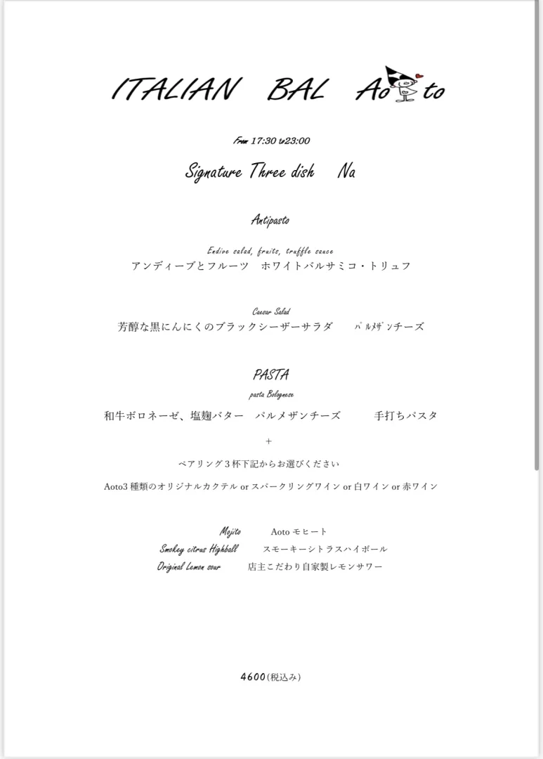 *Aotoスタイル(日替わり)パスタは、トマト系、オイル系、クリーム系、和風パスタのいずれかになります。