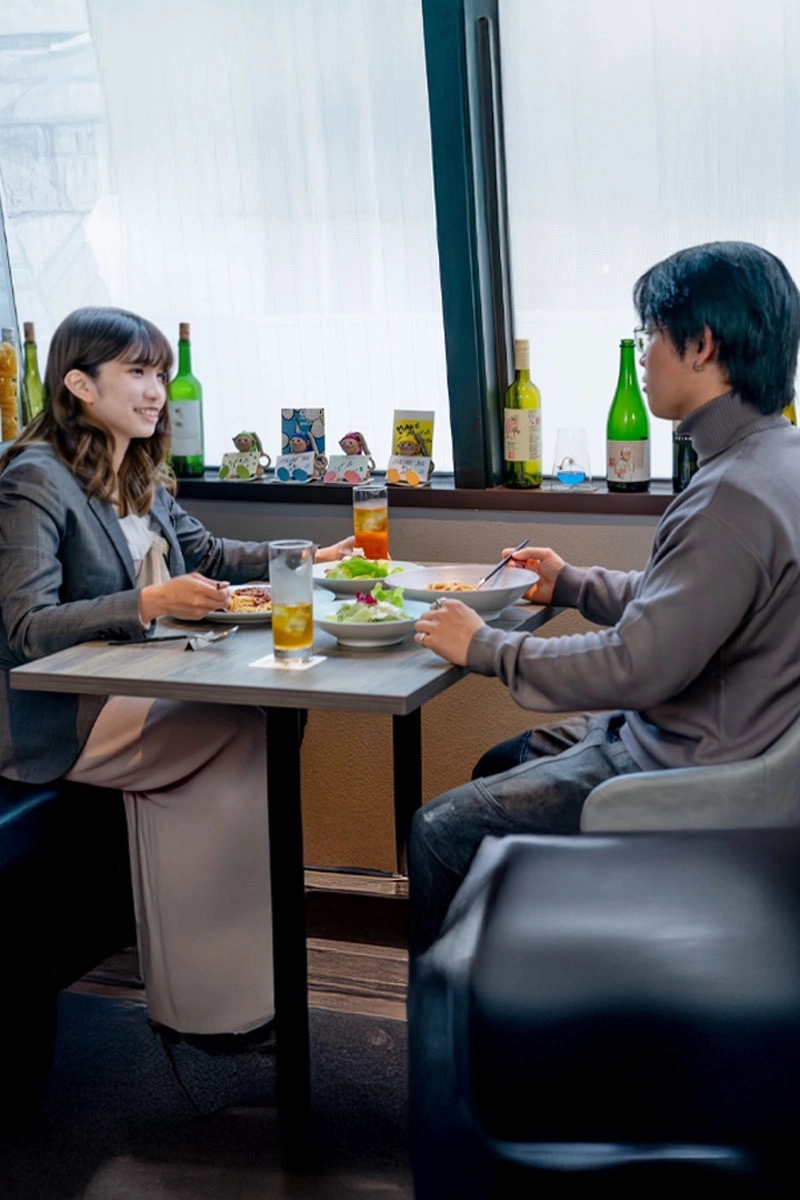 温かな会話を楽しむ特等席。お一人様でもお気軽にお立ち寄りいただける、大人の贅沢な時間をご提供します。